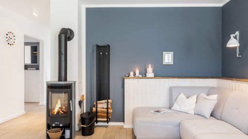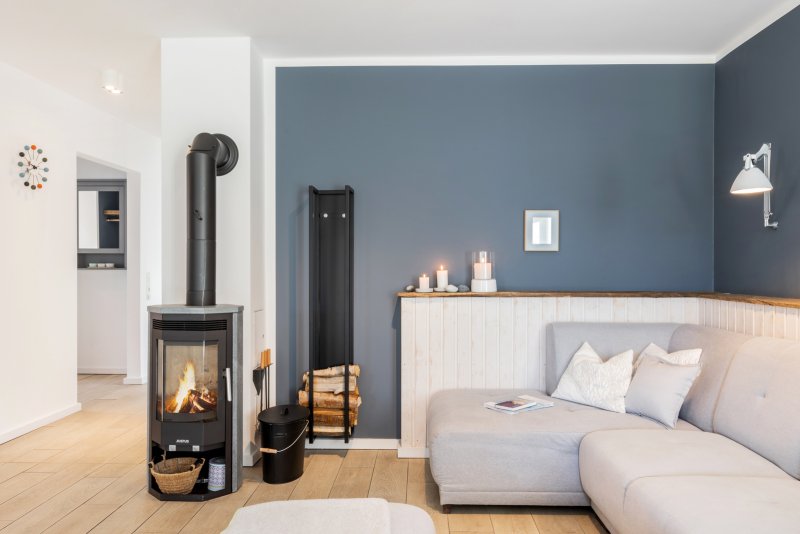 55" LG-Fernseher, LG Blu-ray-Player, Teufel-Stereo-Anlage, Kaminofen, Sofalandschaft, Design-Leselampe, Kaminholz / Anzünder (für eine Pauschale von 10 €/Netz), Design-Esstisch, -Stühle, -Lampe, Stokke Trip-Trap Kinder-Hochstuhl, Fußbodenheizung, Fliegengitter