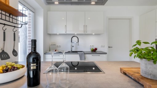 Siemens-Geräte (Ceranfeld, Backofen, Kühl-Gefrierschrank, Geschirrspüler), Mikrowelle, Wasserkocher, Kaffeemaschine, Toaster, Geschirrhandtücher, Fußbodenheizung